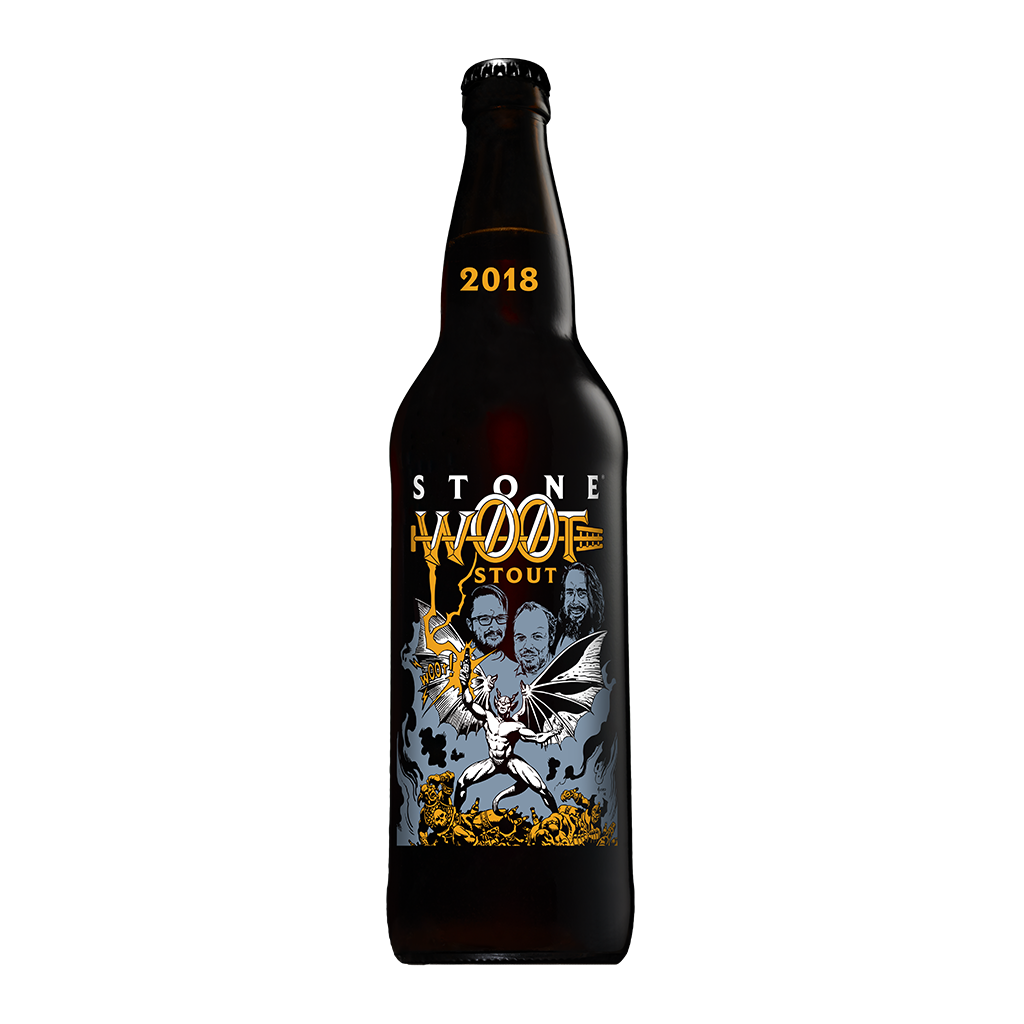 Drew Curtis / Wil Wheaton / Greg Koch Stone Farking Wheaton w00tstout (2019). 11.5% ABV. This massive imperial stout has been a favorite among our fans (and us) since its inception in 2013. As if the pecans, wheat, and flaked rye weren't enough, we went ahead and aged 1/4th of this beer in bourbon barrels. The result is a whopping, intense, superhero of a beer with a profound complexity that makes it ideal for cellaring... if you can wait that long.