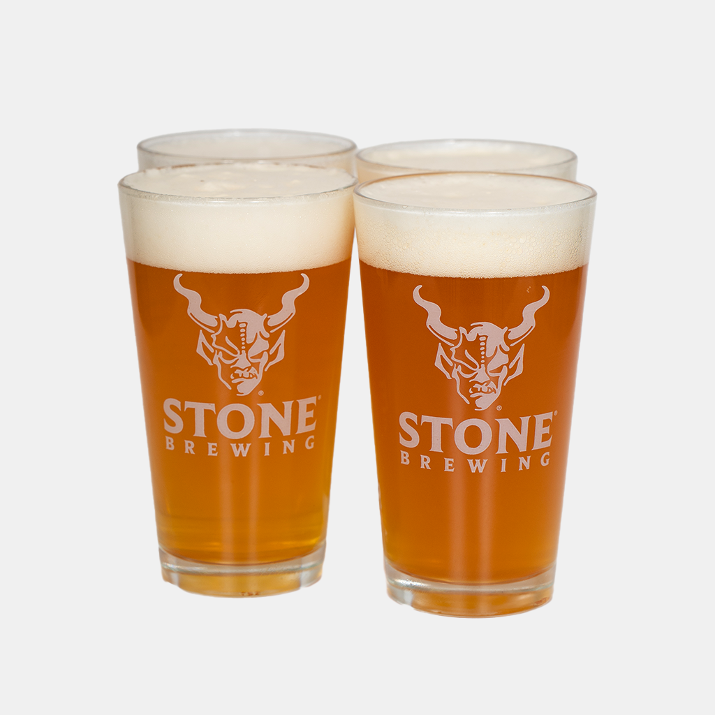 Set of four Stone Brewing pint glasses, which are scientifically proven* to make your beer taste better than other glassware.
