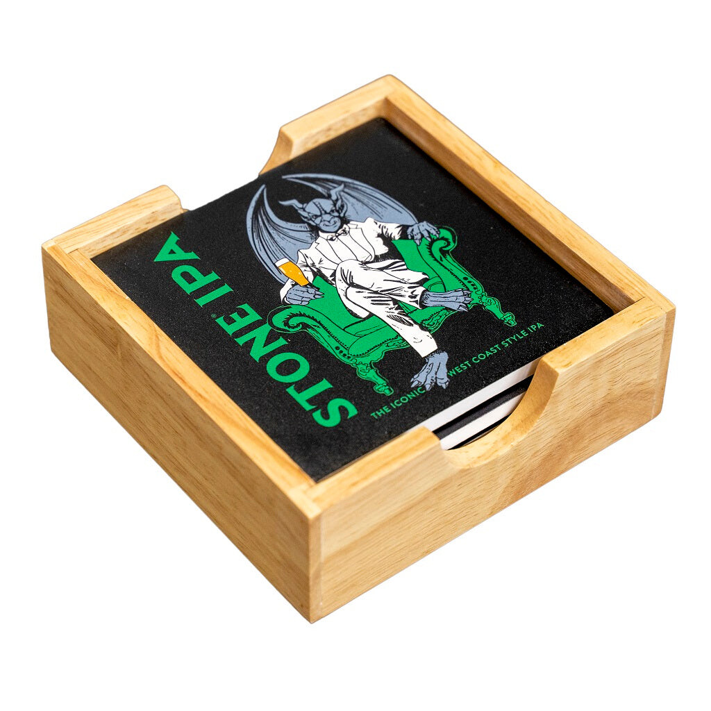 Pencil, paint, digital art, napkin doodles… there are a lot of mediums for self-expression. After putting out a call to action, we gave four artists free reign with our labels. This Guest Artist Series Coaster Set showcases their artistic passion for our four most beloved year-round beers featured in our latest Stone IPA Mixed Pack: Stone IPA (artwork by Ben Fellowes), Stone Delicious IPA (artwork by Edweird), Stone ///Fear.Movie.Lions Hazy Double IPA (artwork by Jimbo Phillips) and Stone Tangerine Express Hazy IPA (artwork by Mcbiff). You can learn more about the artists at stonebrewing.com/mixedpack. Coaster set includes (4) ceramic coasters in wood box.