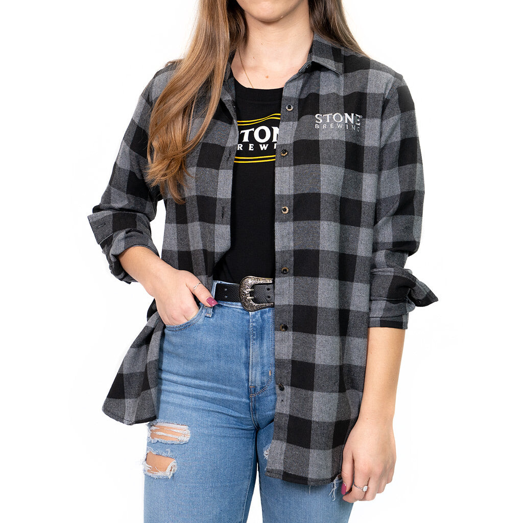 The classic fashion statement popularized by brewers since the dawn of craft beer, now in a modern women's cut. Beard not included. 66% Polyester, 34% Cotton. Embroidered Stone Brewing logo at front chest, leather Gargoyle clamp label at side hem. Slightly tapered at waist, with drop hem in front and back. Slim fit, recommend sizing up.