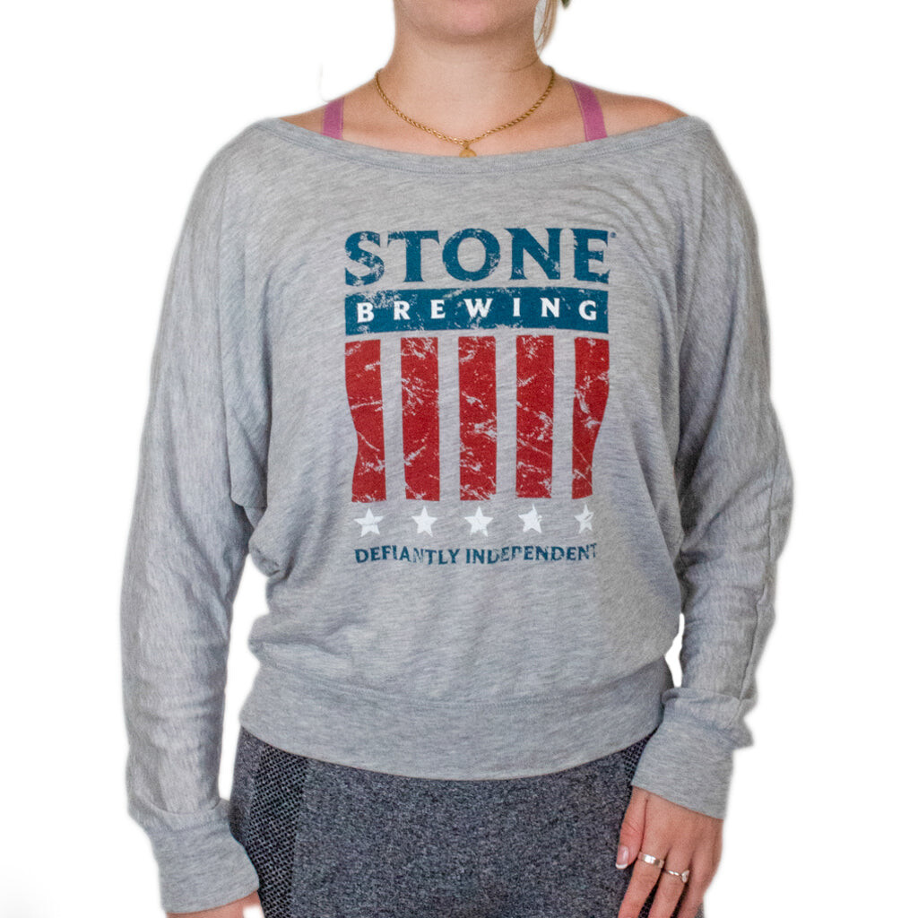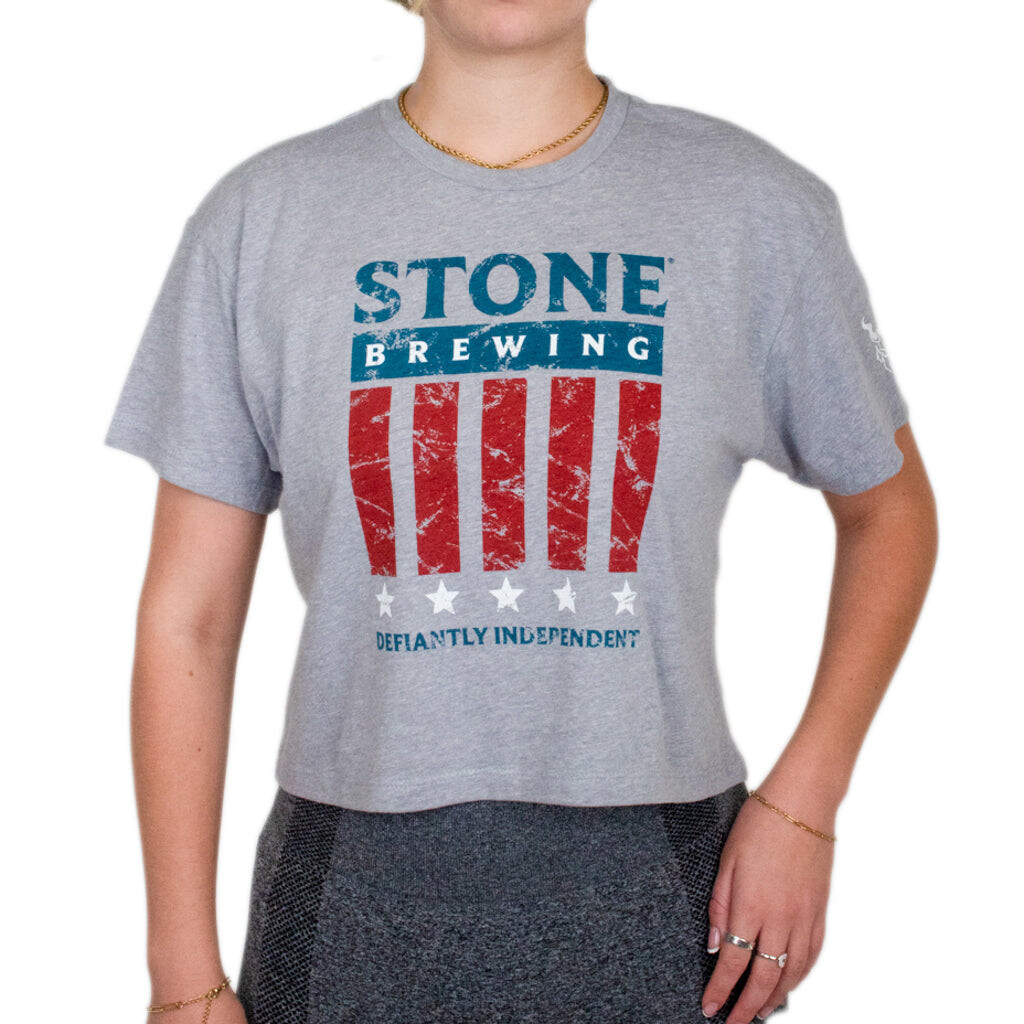 Show your love of independence in the beer world and beyond. 60%40% cotton/poly blend with a tailored, flattering fit and drop-hem sleeves.